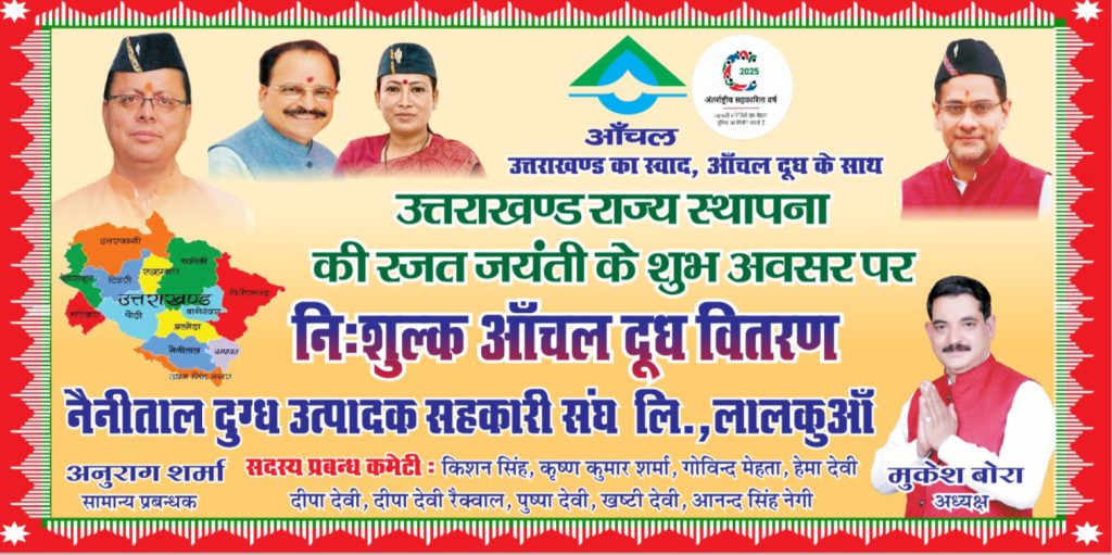 लालकुआं: नैनीताल दुग्ध उत्पादक सहकारी संघ लिमिटेड, लालकुआं ने उत्तराखंड राज्य स्थापना दिवस की रजत जयंती के अवसर पर 1 से 9 नवम्बर तक नौ दिवसीय भव्य कार्यक्रमों की श्रृंखला आयोजित की। दुग्ध विकास मंत्री सौरभ बहुगुणा के मार्गदर्शन में आयोजित इस उत्सव का उद्देश्य राज्यवासियों में शुद्ध दुग्ध, पोषण और सहकारिता के महत्व के प्रति जागरूकता बढ़ाना था।